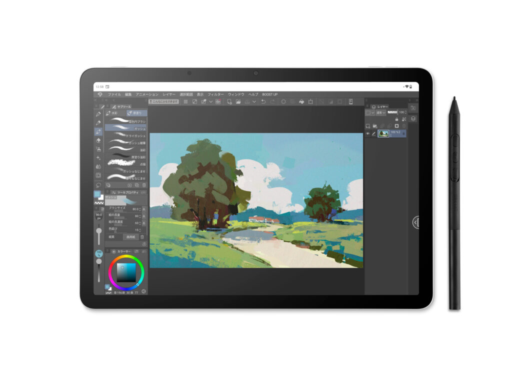 Podstawą pracy na MovinkPad 11 jest aplikacja Wacom Canvas, która pozwala szybko rozpocząć szkicowanie i doskonale współpracuje z funkcją Quick Drawing. Gdy projekt staje się bardziej rozbudowany, użytkownik może skorzystać z aplikacji Clip Studio Paint DEBUT, dzięki czemu tablet staje się idealnym narzędziem np. do tworzenia komiksów. Szkice wykonane w Wacom Canvas można łatwo przenieść do Clip Studio, a Wacom MovinkPad 11 działa z tymi programami płynnie i bez zakłóceń.
