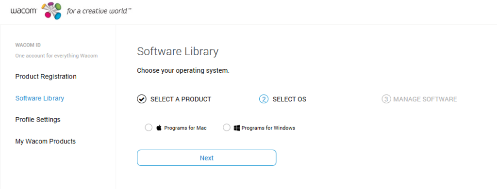 * Aby ściągnąć aplikacje musisz zarejestrować się na stronie lub stworzyć Wacom ID, a następnie zarejestrować swój tablet Intuos. Może być wymagana rejestracja oprogramowania u jego producenta.